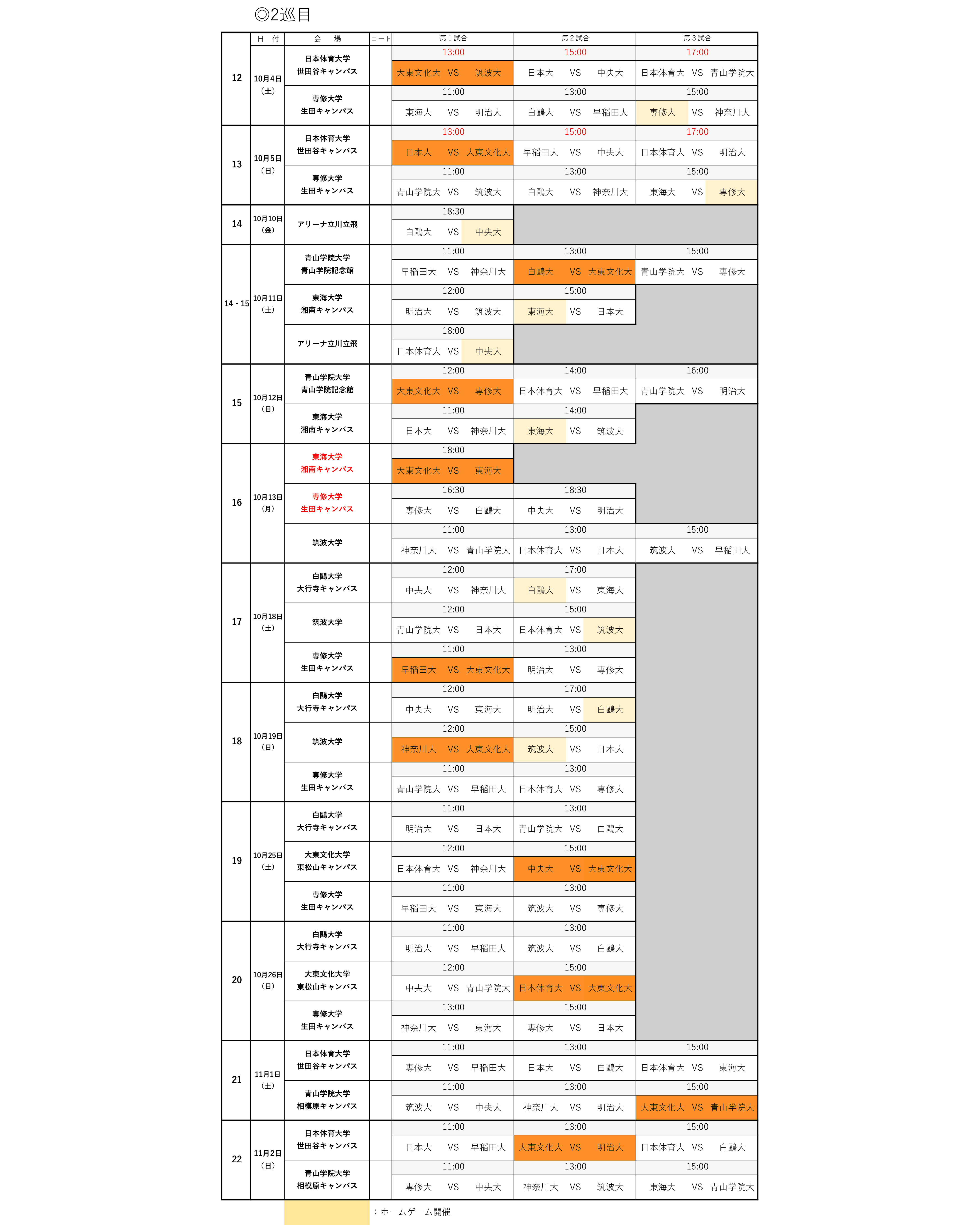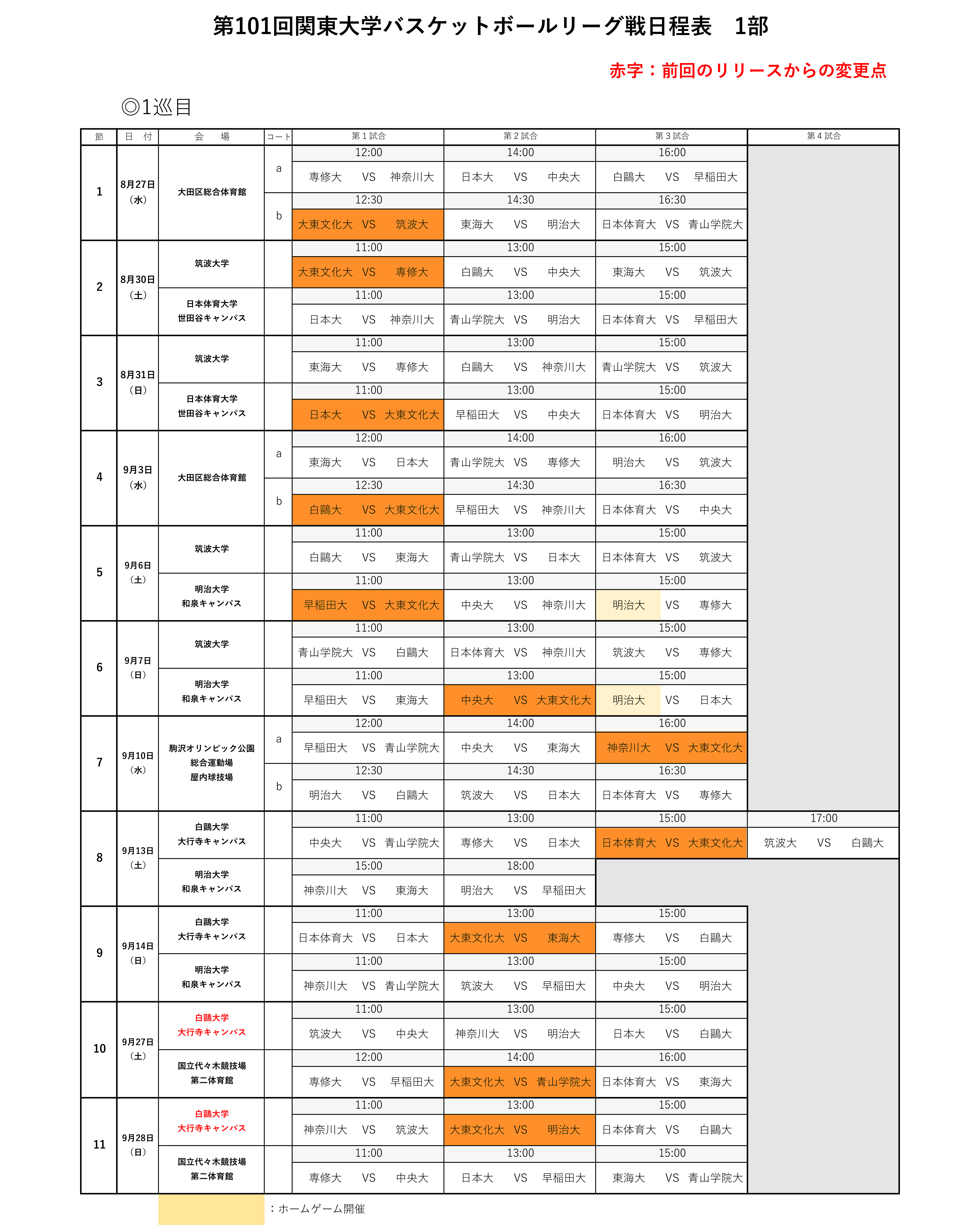 【第101回関東大学バスケットボールリーグ戦日程表】