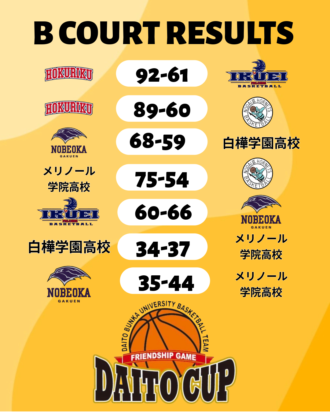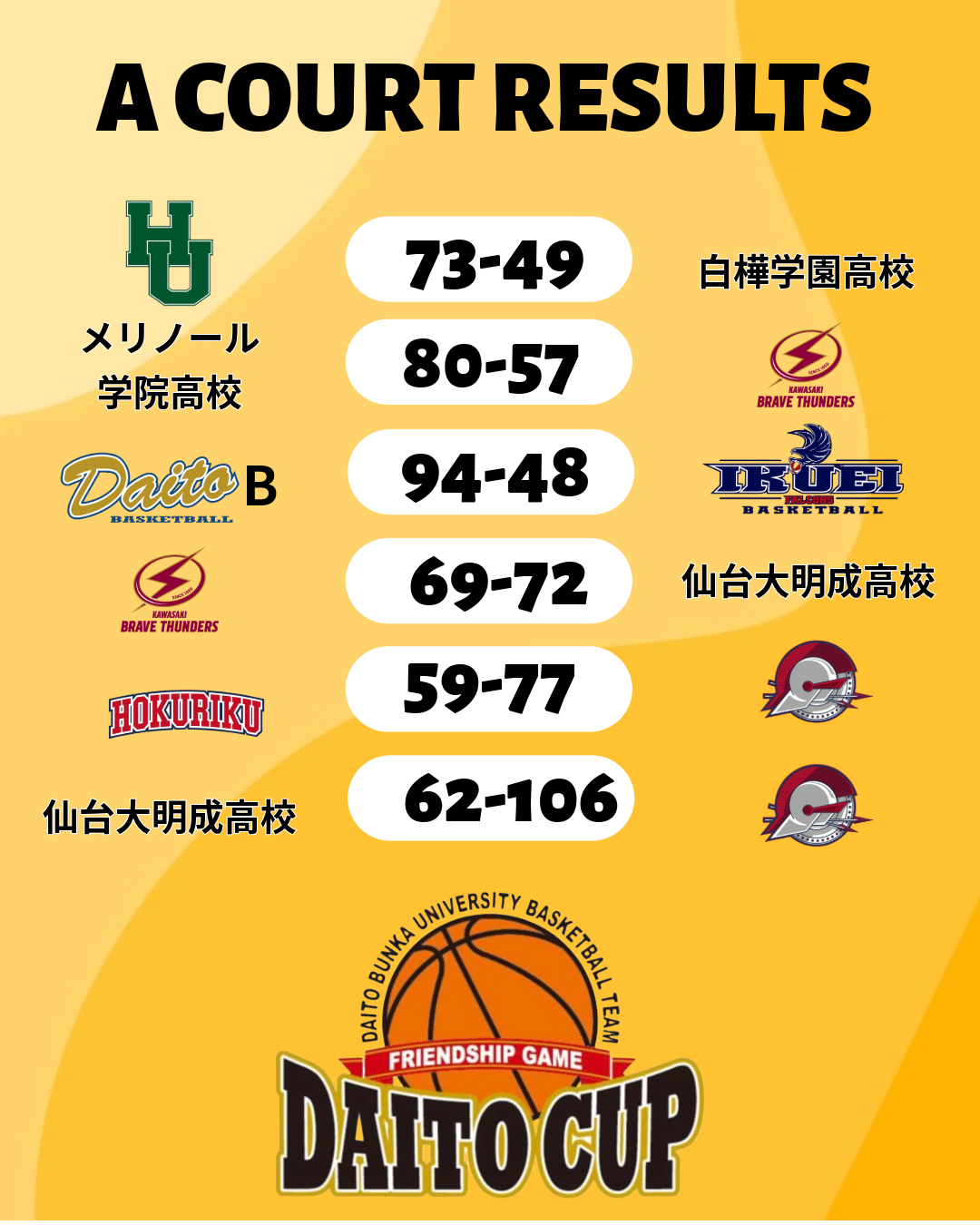 25日の試合結果をお知らせいたします。